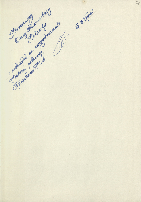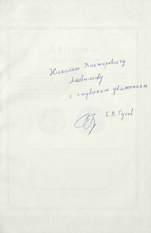 Борис Владимирович неоднократно дарил книги нашей библиотеке, из них сформирована «Коллекция Б.В. Гусева». А в «Коллекции автографов» хранятся книги с его личными автографами.