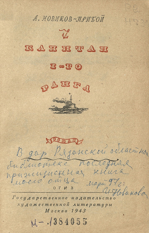 - Новиков-Прибой А. С. Капитан 1-го ранга : роман / А. Новиков-Прибой. – Москва : Гослитиздат, 1943. – 192 с.