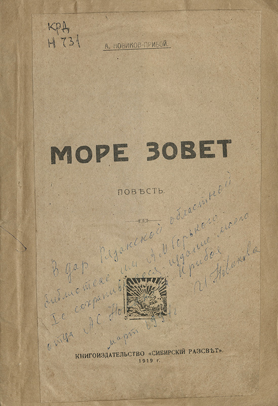 - Новиков-Прибой А. Море зовет : повесть / А. Новиков-Прибой. – Барнаул : Сибирский рассвет, 1919. – 55 с.