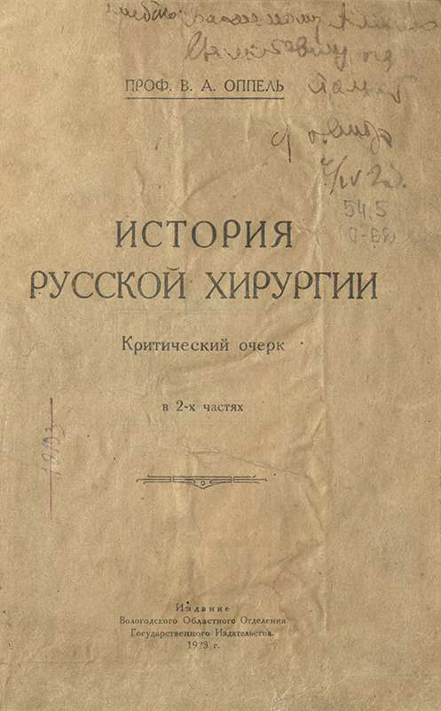 В 1923 году он опубликовал книгу под названием «История российской хирургии», состоящую из 2 частей. В ней впервые изложена история и самобытность отечественной хирургии, деятельность хирургических обществ, вклад женщин-хирургов, развитие хирургических школ.