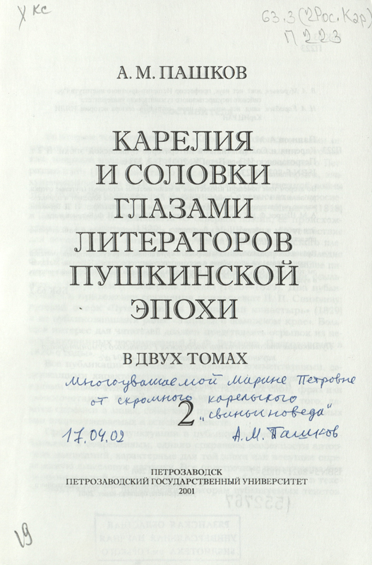 В «Коллекции автографов» Рязанской библиотеки имени Горького хранятся книги с автографами Александра Михайловича Пашкова. Автографы адресованы российскому историку, журналисту и краеведу Марине Петровне Мохначевой (1952 – 2014).