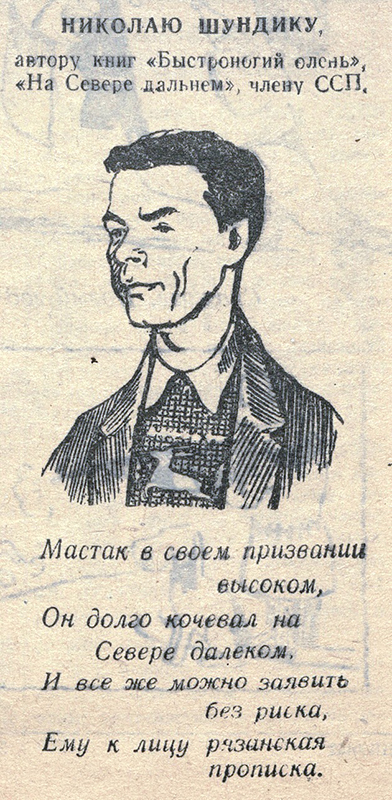 Сегодня исполняется 105 лет со дня рождения Николая Елисеевича Шундика (1920–1995), писателя, редактора журнала, директора издательства, члена Союза писателей СССР (1950). За заслуги в развитии советской литературы Н.Е. Шундик награжден двумя орденами Трудового Красного Знамени, орденом Дружбы народов, орденом «Знак Почета». Благодаря своим популярным произведениям о жизни Крайнего Севера считается одним из создателей чукотской литературы.