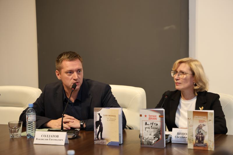 Дмитрий Александрович Нарыжный, директор Донецкой республиканской универсальной научной библиотеки имени Н.К. Крупской, представил книгу «Саур-Могила: от легенды к подвигу», рассказав историю стратегически важной высоты и легендарных подвигов защитников этой местности.
