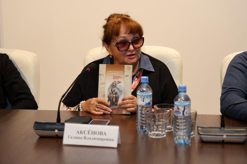 Заместитель директора по научной и проектной деятельности Луганской Республиканской универсальной научной библиотеки имени М. Горького Галина Владимировна Аксенова говорила о книге «Эти русские мальчики…», содержащей литературные сочинения участников донбасского конфликта.