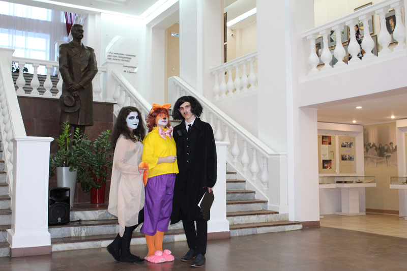Участников квеста встречал улыбчивый Кот Леопольд, в холле их ожидало доброе привидение, а за памятником Горькому притаился писатель… Николай Васильевич Гоголь. Персонажи необычные, но очень важные. Они давали ребятам подсказки по прохождению квеста и рассказывали об истории библиотеки.