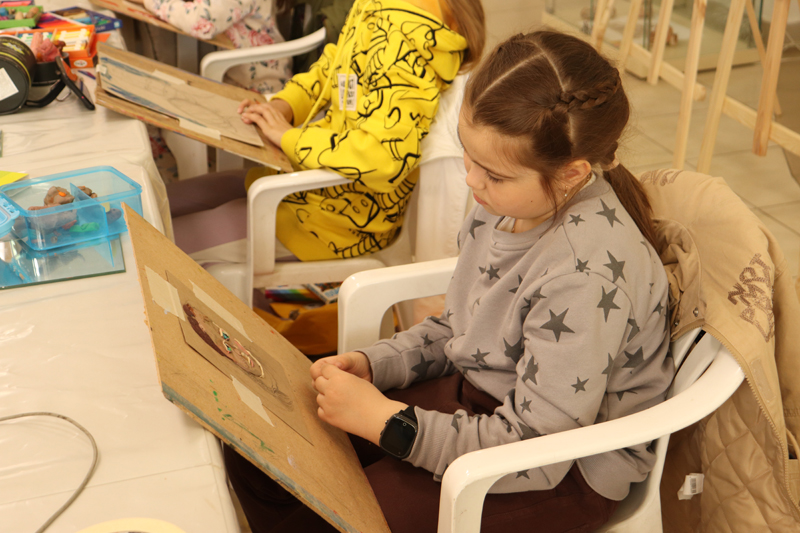 Прежде чем приступить к практическому занятию дети посмотрели небольшой фильм, из которого узнали историю создания пластилина. После этого ребята с увлечением приступили к лепке автопортрета. Занятие оказалось весьма увлекательным: юные художники подробно рассматривали себя в зеркале и переносили черты на картон. Людмила Львовна никого не оставила без внимания: познакомила ребят с основами портретной живописи, рассказала о тонкостях написания лица идетям удалось передать не только внешнее сходство, но и характер.