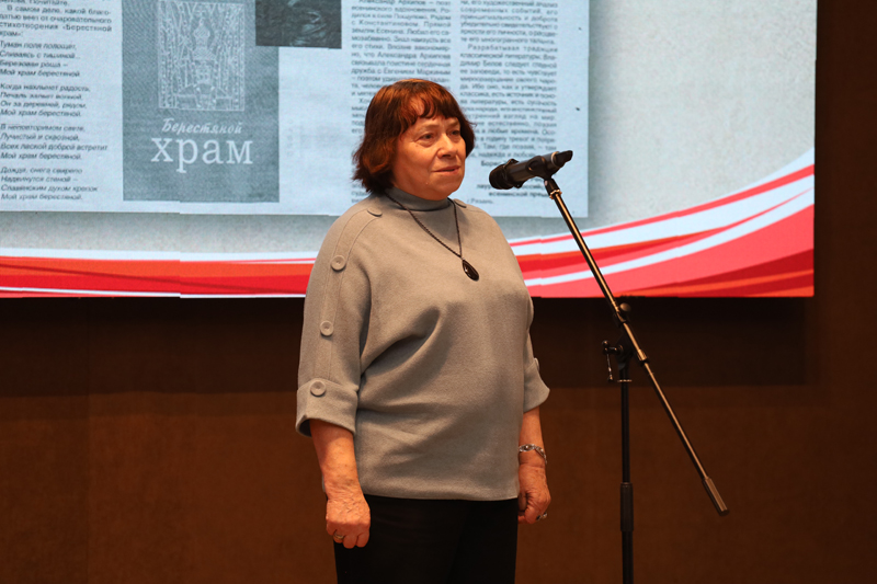Со сцены звучали проникновенные поэтические строки Бориса Жаворонкова в исполнении воспитанников Центра одаренных детей «Гелиос», а также уникальные аудиозаписи стихов в исполнении самого автора, предоставленные из семейного архива Б.И. Жаворонкова.