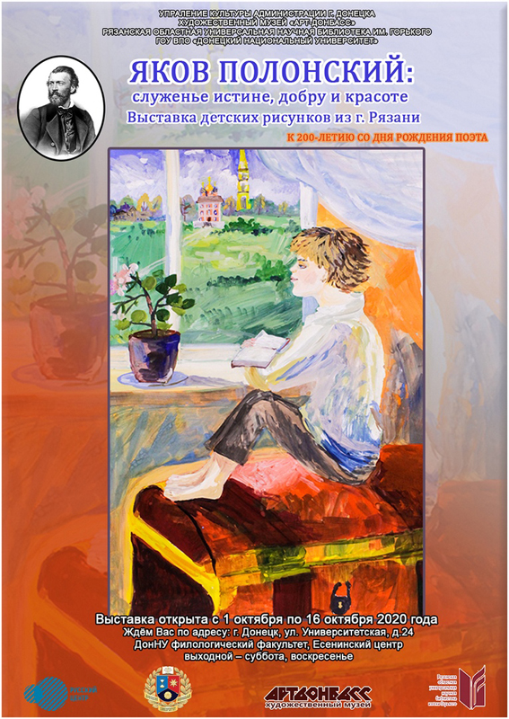 С 1 по 16 октября в Есенинском центре Донецкого национального университета в рамках программы интеграции «Россия – Донбасс» художественный музей «Арт-Донбасс» представил выставку детского рисунка «Яков Полонский: служенье истине, добру и красоте».