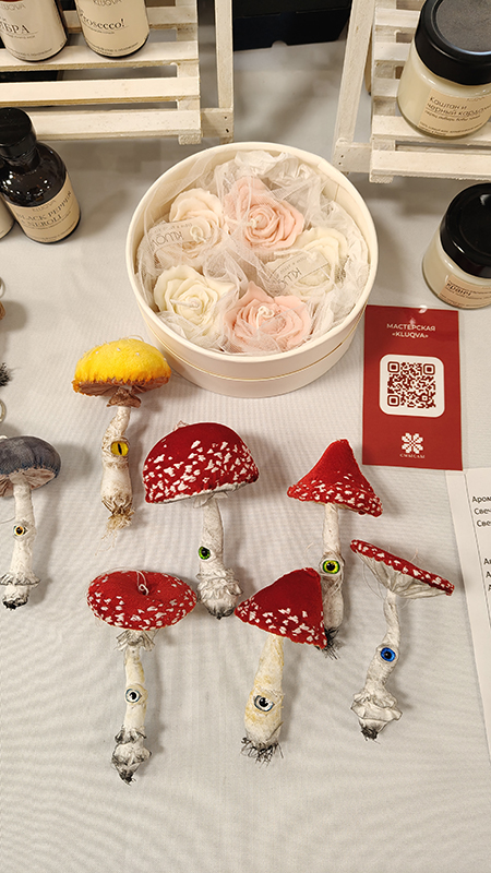 На ярмарке были представлены самые разнообразные товары: изысканные украшения, стильные аксессуары, натуральная косметика, ароматы, свечи и многое другое. Каждый мастер предлагал уникальные изделия, созданные с любовью и мастерством.