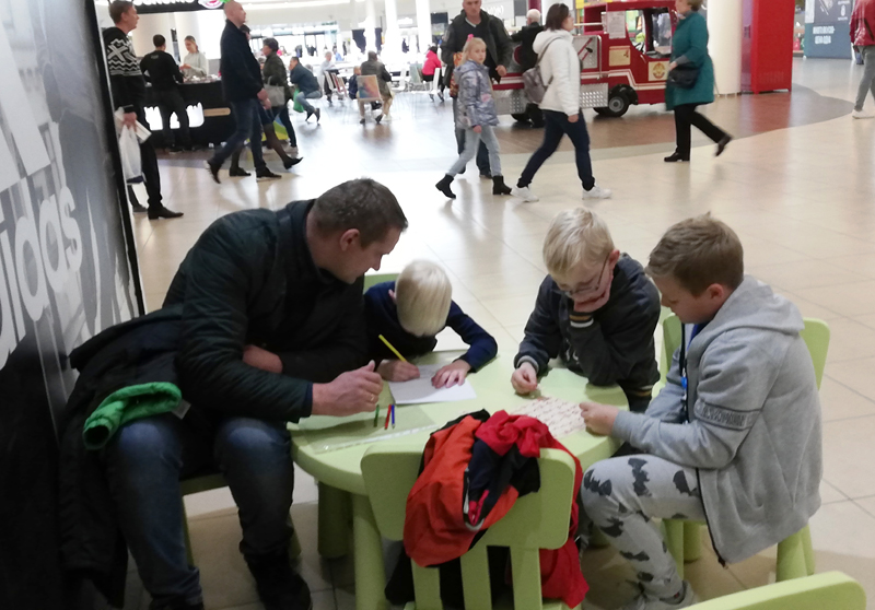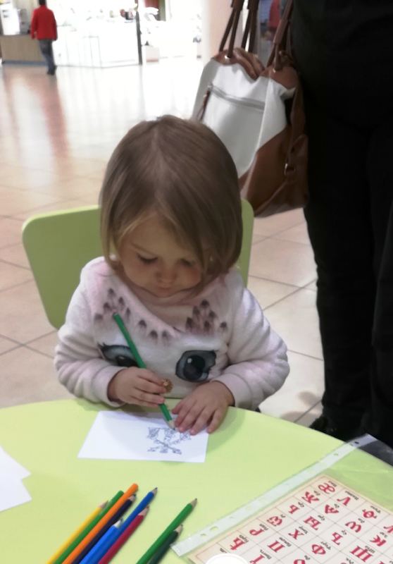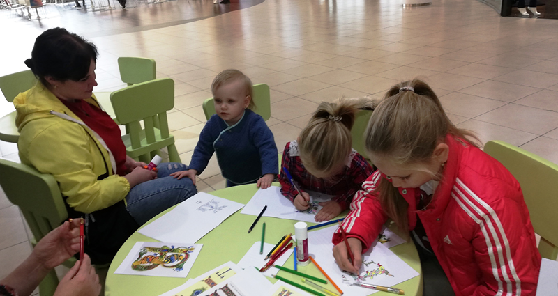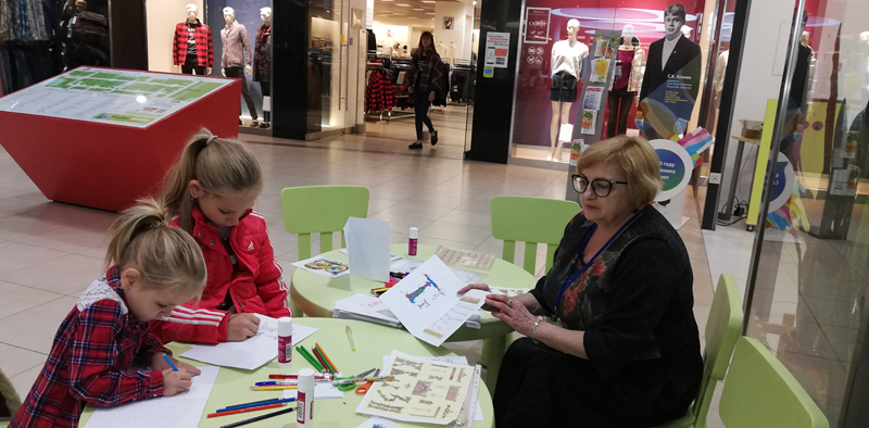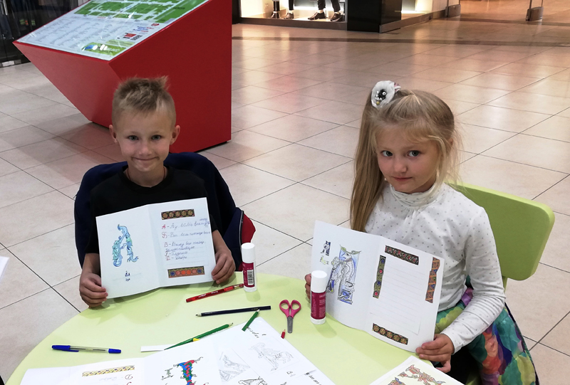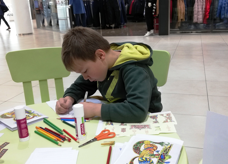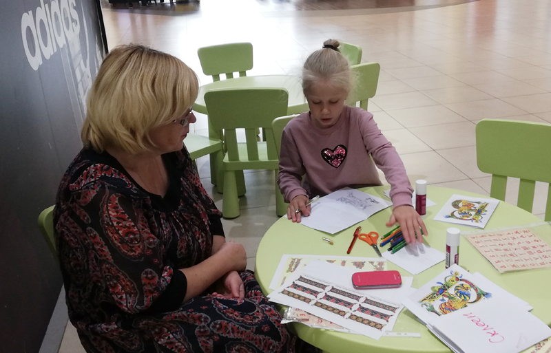 В мобильной точке библиотеки имени Горького в торгово-развлекательном центре «М5 Молл» дети и их родители своими руками создавали неповторимую открытку из бумаги с древнерусскими буквицами.
