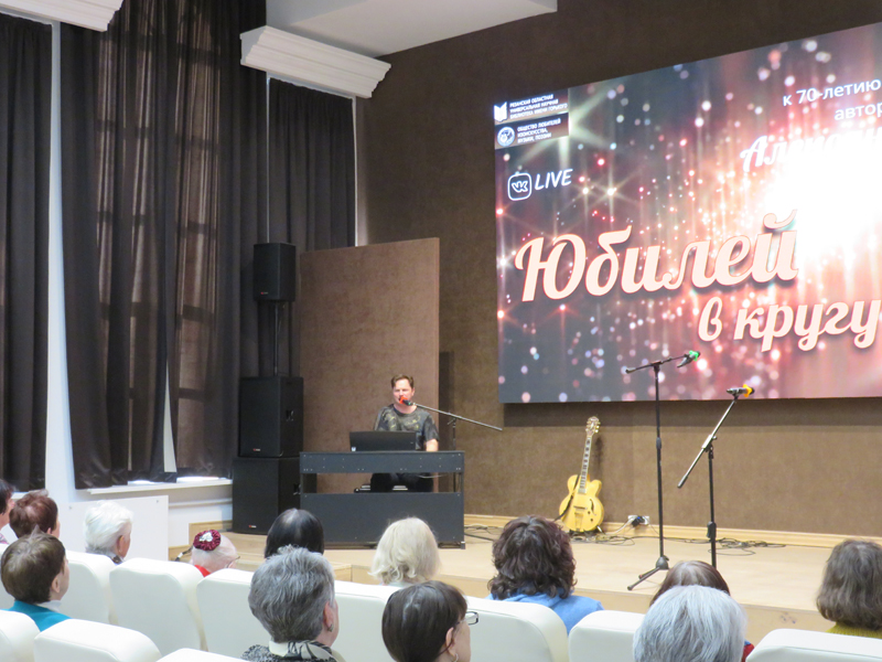 На юбилейном концерте прозвучало много тёплых слов и пожеланий от коллег, друзей и ценителей творчества героя сегодняшнего вечера. Александр Сергеевич поделился своими воспоминаниями о детстве, студенческих годах, рассказал забавные эпизоды из жизни и дополнил рассказы своими стихами и песнями.