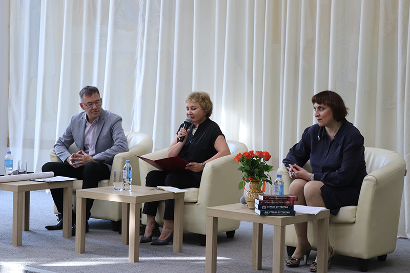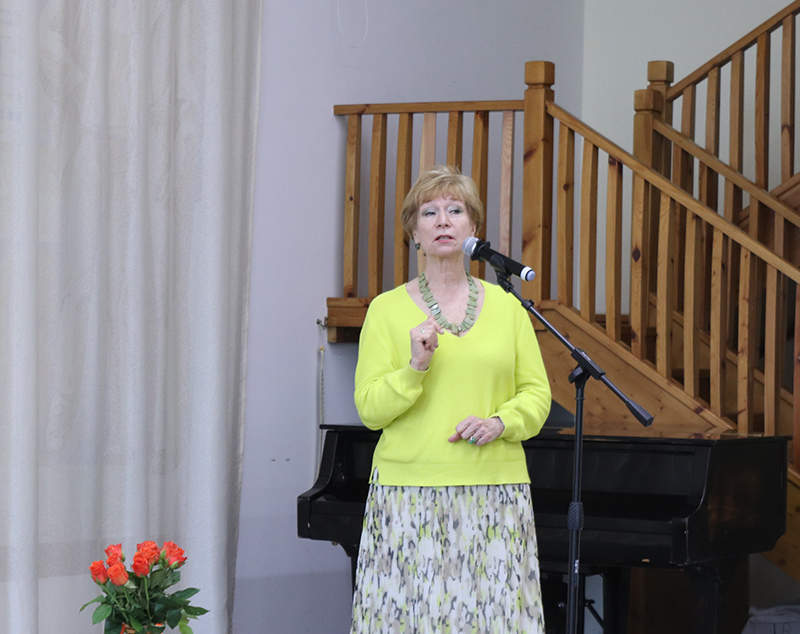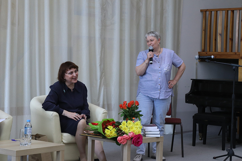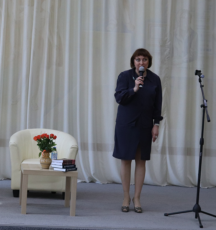 Елена Сафронова поблагодарила все собравшихся за поздравления, теплые слова, добрые пожелания и подарила книги в фонды библиотеки.