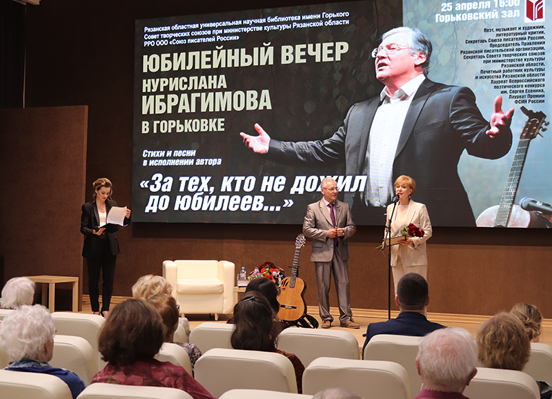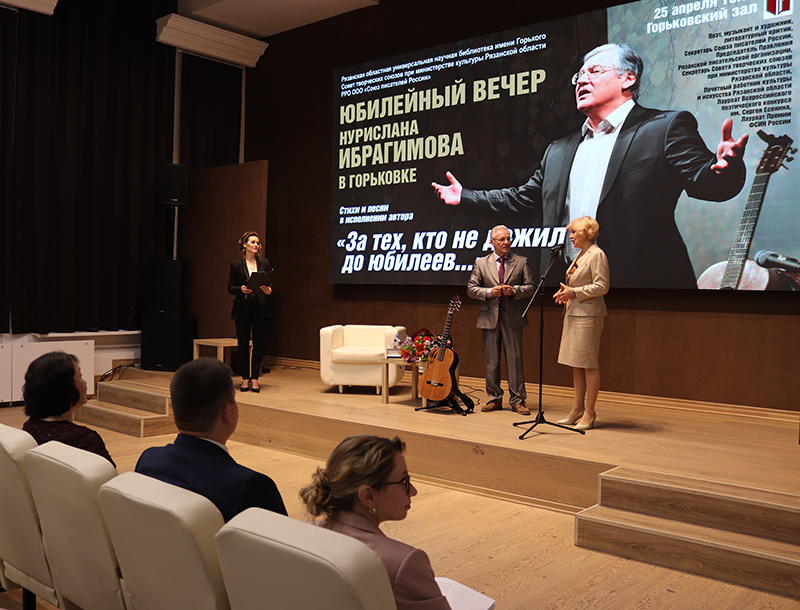 В библиотеке состоялся юбилейный вечер Нурислана Ибрагимова, секретаря Союза писателей России, председателя правления Рязанской писательской организации, секретаря Совета творческих союзов при министерстве Рязанской области, почетного работника культуры и искусства Рязанской области, поэта, музыканта, художника, литературного критика.