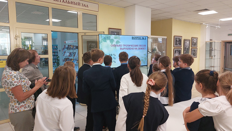 11 сентября сотрудники кафедры производственной литературы универсального читального зала провели экологическую игру «Зеленая цепочка» для юных любителей природы.