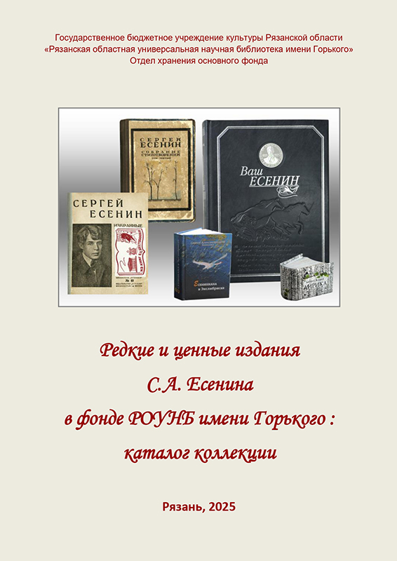 К знаменательной дате — 130-летию со дня рождения Сергея Александровича Есенина — на сайте Рязанской областной универсальной научной библиотеки имени Горького размещено электронное издание переработанного и дополненного каталога редких и ценных изданий поэта, хранящихся в фонде библиотеки.