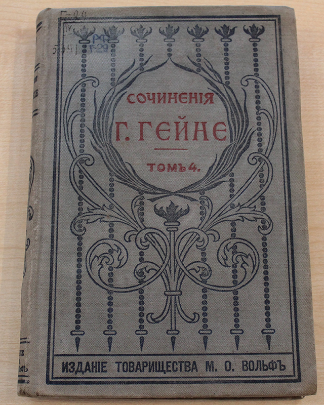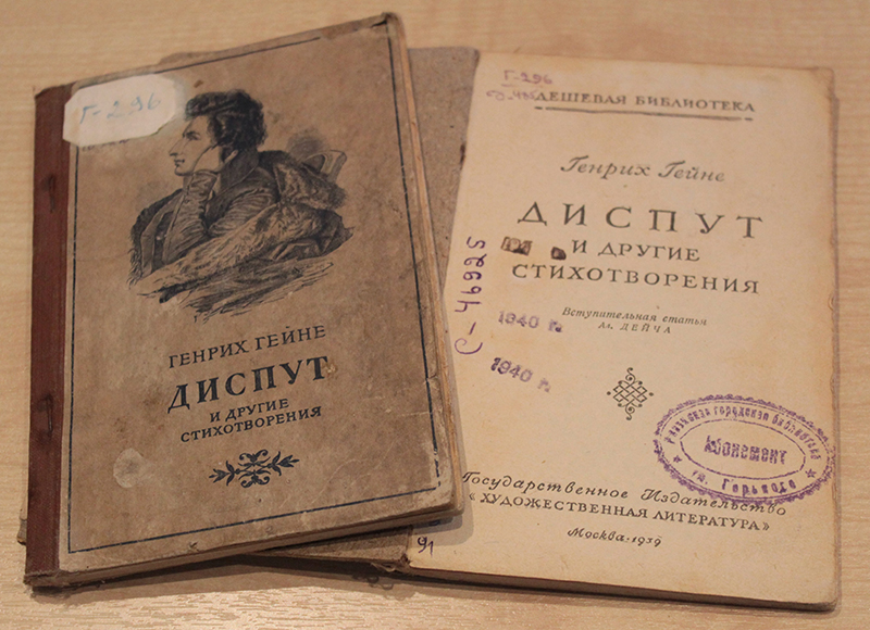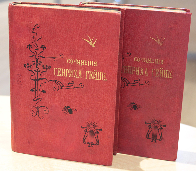На выставке посетители познакомятся с творчеством великого поэта. Представлены собрания сочинений Гейне на немецком и русском языках, изданные в 1867, 1887, 1900 и 1904 годах. Интерес вызовет 7 том собрания сочинений под редакцией П.И. Вейнберга, с портретом автора и его факсимиле, а также малоформатное издание «Диспут и другие стихотворения», 1939 года.