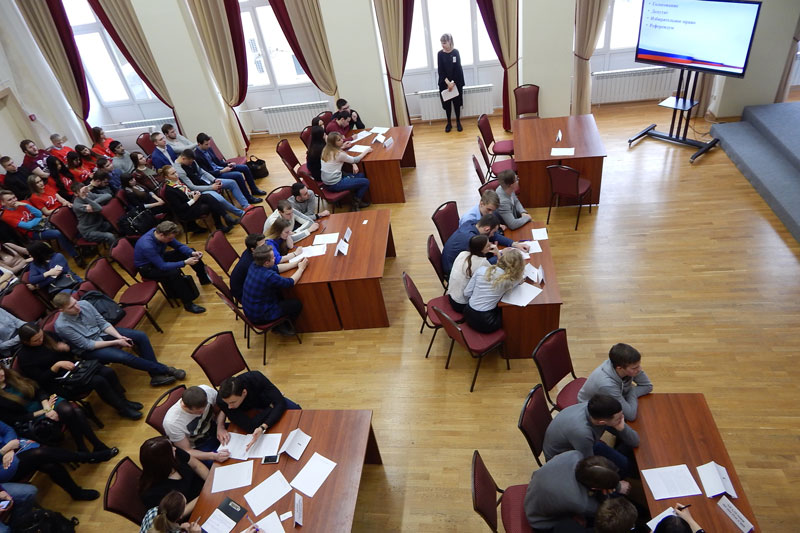 Игра погрузила участников в историю и теорию избирательного права. В ней приняли участие студенты пяти вузов Рязани: Академии ФСИН, РГУ имени С.А. Есенина, РязГМУ имени академика И.П. Павлова, Рязанского института (филиала) Московского политехнического университета, филиала Московского университета им. С.Ю. Витте. Вузы были представлены командами численностью пять игроков каждая и группами поддержки.