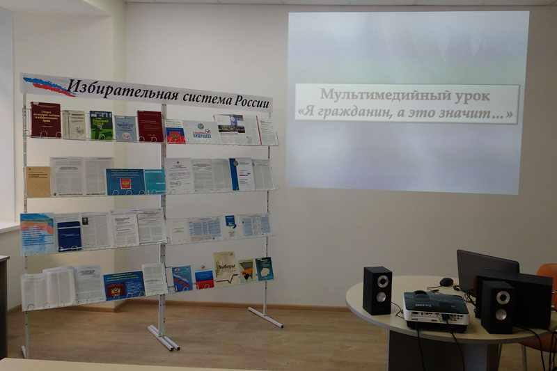 В экспозицию аудитории для проведения мультимедийных уроков была включена книжно-журнальная выставка «Избирательная система России», подробнейшим образом освещавшая весь механизм президентских выборов.