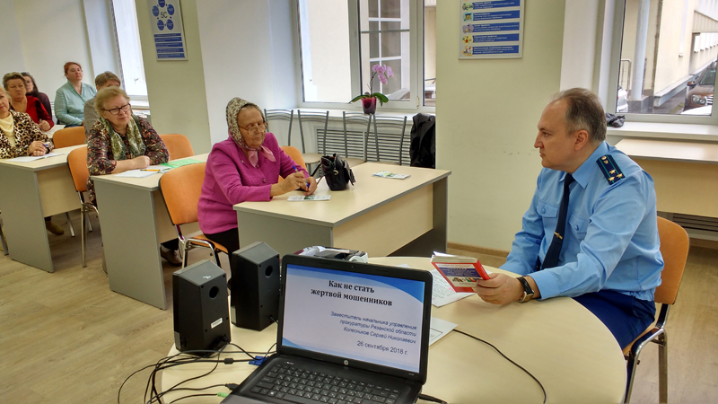В рамках лектория «Вправе.ру», организованного в начале текущего года для представителей старшего и среднего возраста, сегодня в библиотеке состоялось тематическое мероприятие «Как не стать жертвой мошенников». Говорили о наиболее распространенных видах мошенничества: в сфере мобильной связи и интернета, от имени представителей социальных служб, банков и кредитных организаций.