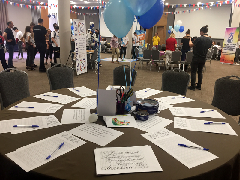 Свою лепту внесли в проведение фестивальных мероприятий и сотрудники библиотеки, подготовившие мастер-класс «Каллиграфический старт». Ребята получили первоначальные знания о каллиграфии, отточили свое умение в искусстве красивого письма, а затем оформили поздравительные открытки для друзей и близких людей. На другой площадке фестиваля состоялся мастер-класс по бумагопластике «Загадки школьного портфеля». Его участники смастерили своими руками тематическую упаковку для подарка в виде школьного рюкзачка, а также небольшую записную книжечку. Ребята творчески подошли к процессу и постарались внести в оформление поделок свою изюминку.