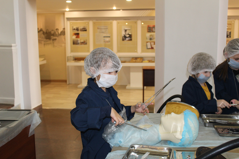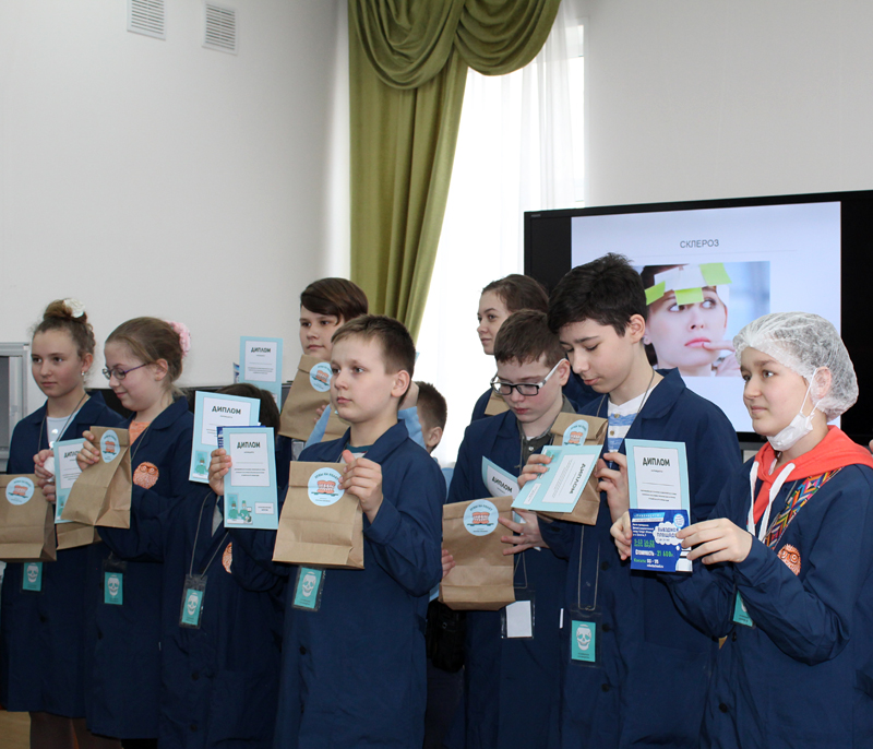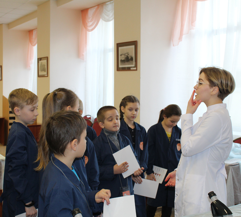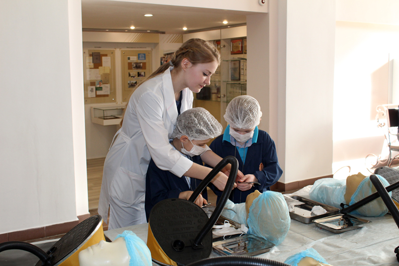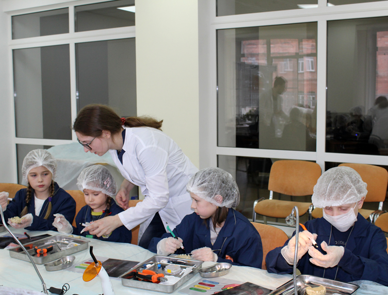 Для ребят 7–14 лет были оборудованы четыре лаборатории, где они перевоплотились в настоящих врачей. В лаборатории «Челюстно-лицевая хирургия» ребята разобрались в том, какие бывают зубы; узнали, что такое штифт и коронки, а также как их подбирают и устанавливают; нашли и удалили больной зуб на макете челюсти; изготовили имплант и установили его на место; сделали слепок вылеченной челюсти.