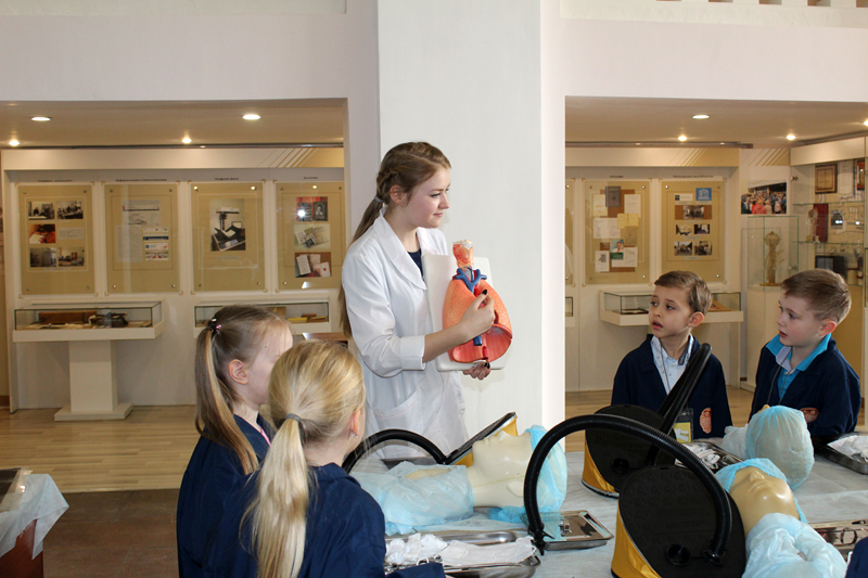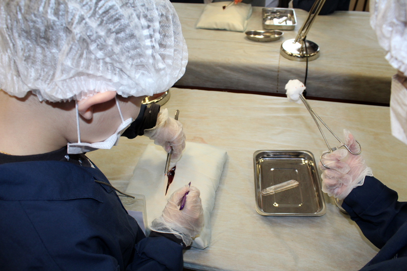 Завершилось перевоплощение во врачей в лаборатории «Хирургическая гастроэнтерология». Здесь ребята сделали анализ крови на наличие лейкоцитов; узнали, как устроен кишечник и удалили воспаленный аппендикс; разобрались, как правильно делать анестезию, и поставили капельницу, чтобы больной точно пошел на поправку.