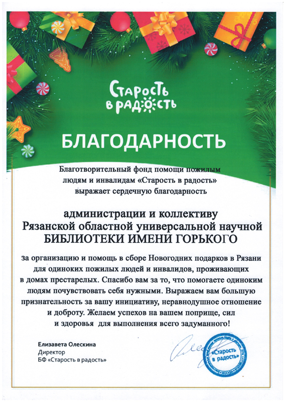 А мы, в свою очередь, с огромной радостью принимаем благодарственное письмо от главных организаторов акции, благотворительного фонда «Старость в радость»!