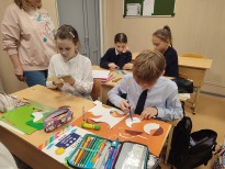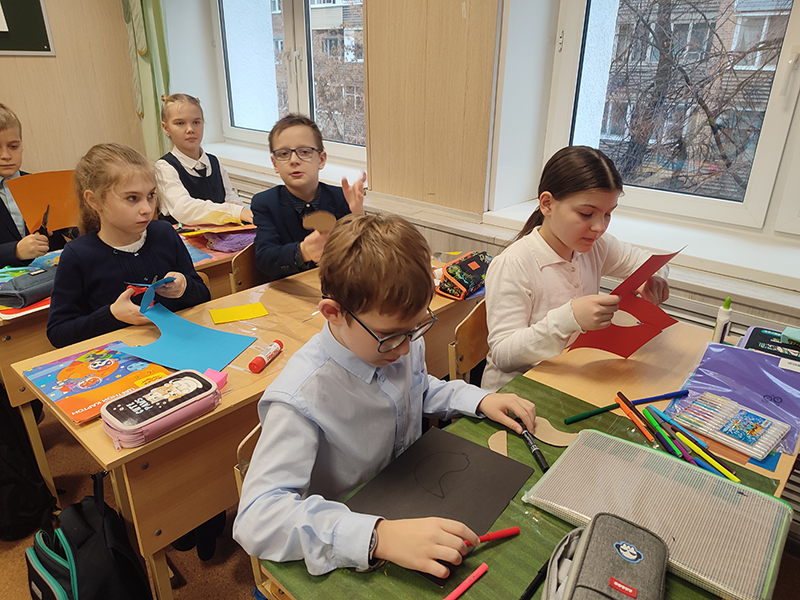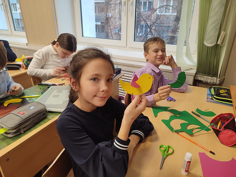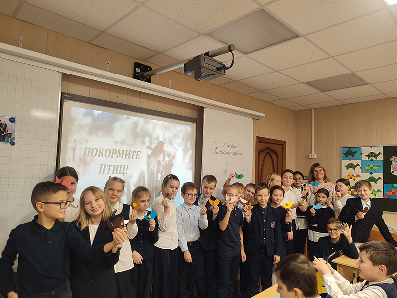 Школьники получили в подарок красочные книжные закладки с полезной информацией о подкормке птиц и приняли участие в мастер-классе «Птичка».