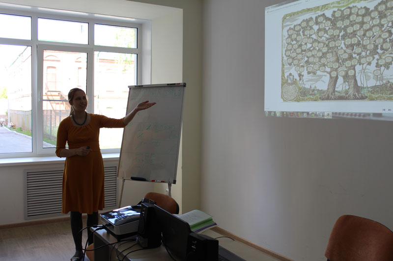 Ведущая мастер-класса, журналист Анна Керносова подробно рассказала, как при составлении родословной правильно подготовить и взять интервью у близких родственников, как заранее сформулировать вопросы конкретному человеку, на которые ответить может только он. Анна показала, как нужно работать с диктофоном, объяснила, почему для интервью не подходит видеокамера и в каком случае лучше пользоваться ручкой и блокнотом. Ведущая мастер-класса отметила, что лучший помощник в интервью – фотоальбом, ведь рассматривая и обсуждая фотографии, человек может вспомнить много интересных фактов из жизни. Участники мастер-класса узнали, как нужно закончить интервью, как сохранить собранный материал, расшифровать информацию, выделить главное, убрать ненужное.