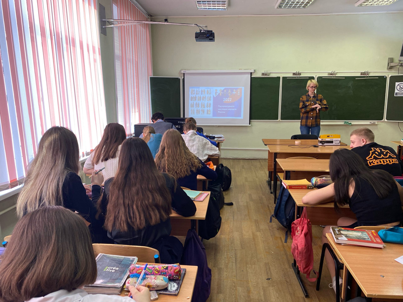 В рязанской школе №36 прошел библиоурок, посвященный народному искусству и культурному наследию народов России. Урок провели сотрудники центра МИР И Я областной библиотеки имени Горького.