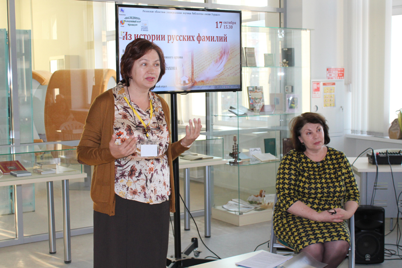 В фондах РОУНБ им. Горького имеются издания об истории фамилий уроженцев Рязанской губернии и современных фамилиях Рязанской области. Любой желающий может ознакомиться со «Словарем фамилий Рязанской области» Юлианы Юрьевны Гордовой, авторефератом диссертации Лидии Сергеевны Плавинской «Фамилии Рязанского дворянства XVI – XVIII веков и их отражение в местной топонимии» и другими.