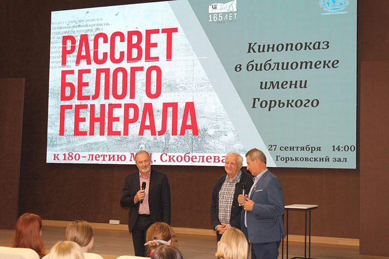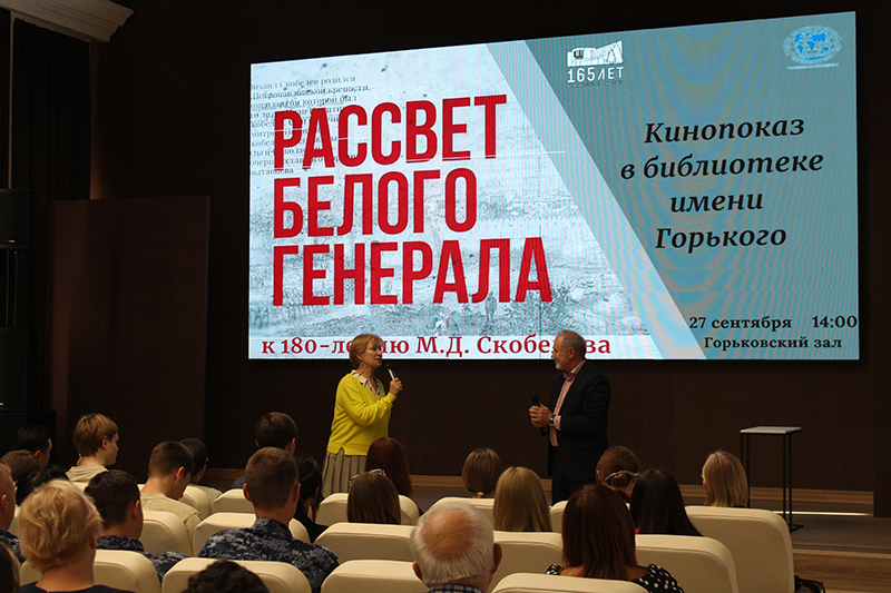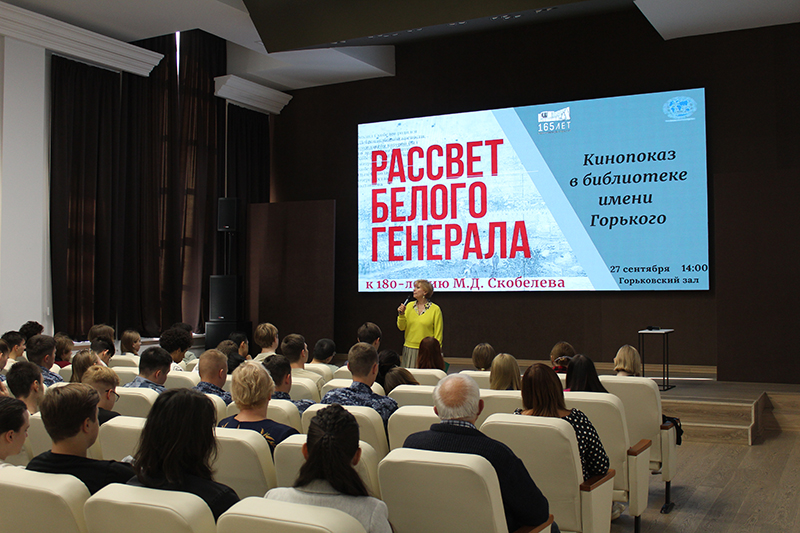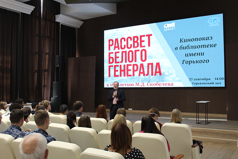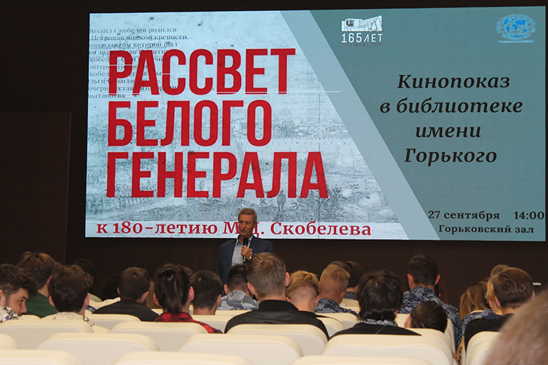 К 180-летию со дня рождения выдающегося русского полководца Михаила Дмитриевича Скобелева в библиотеке состоялся показ документального фильма «Рассвет Белого генерала», созданного Рязанским областным отделением РГО и студией «Инноко филмз».