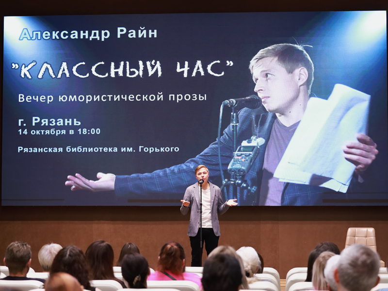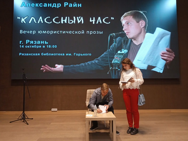 Сегодня в Горьковском зале библиотеки состоялся вечер юмористической прозы Александра Райна – писателя и блогера, автора одиннадцати изданных книг, сборников юмористических рассказов и романов в жанрах мистики, фэнтези и фантастики.