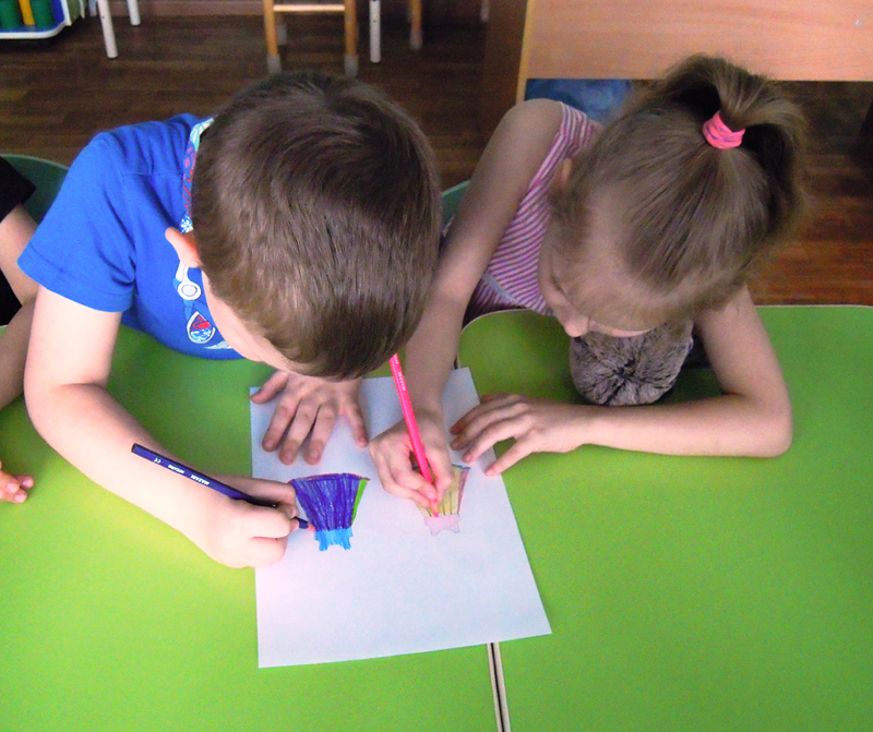 А затем детвора с огромным удовольствием раскрашивала сарафаны и рубахи. Дети рассматривали иллюстрации к русским народным сказкам «Царевна-лягушка», «Морозко», «Гуси-лебеди», играли в дидактические игры «Раскрась сарафан», «Атласные ленточки», «Одень куклу».