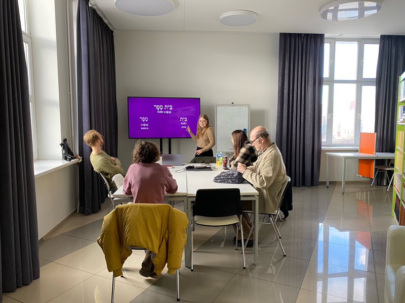 Очередная встреча участников клуба любителей иврита под руководством преподавателя была посвящена грамматическим и историческим языковым феноменам. Посредством игровой методики участники разобрали явление сопряжённых сочетаний «смихут», благодаря историческим экскурсам узнали о влиянии арамейского языка на иврит.