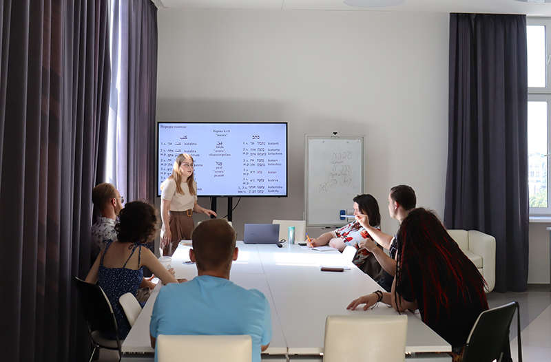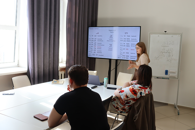 Занятие началось с чтения и анализа текста на иврите. В качестве грамматического компонента участникам было предложено изучение глагольных форм прошедшего времени.