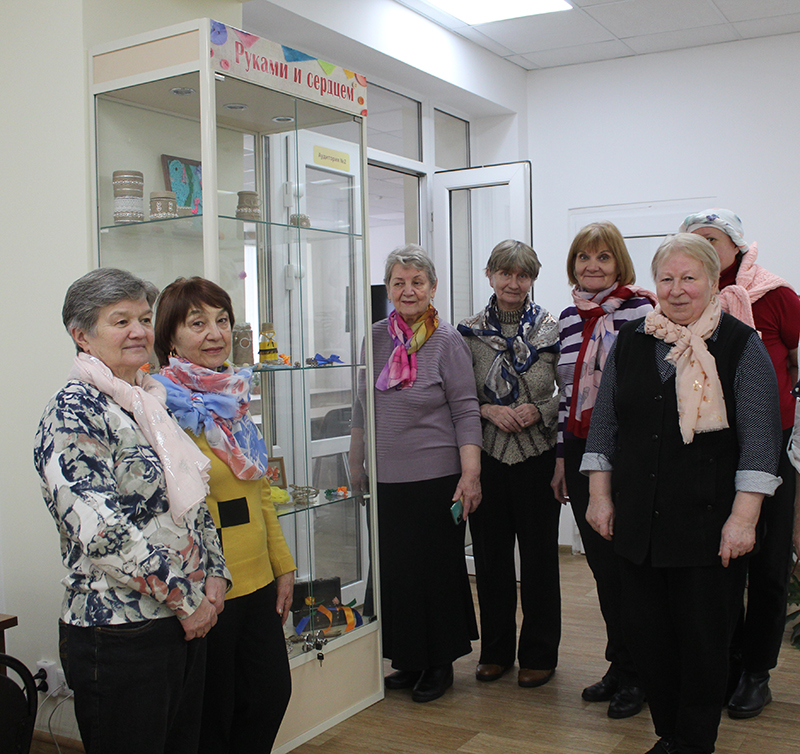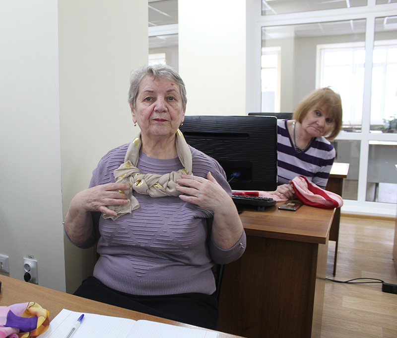 В программу проекта был включен также мастер-класс по изготовлению шейных украшений из платков. Отдаленность весны не стала помехой для этого вида творчества на состоявшейся встрече. Мастер-класс осуществился после выполнения основной повестки клуба «Свет в окне», посвященной работе в графических редакторах.