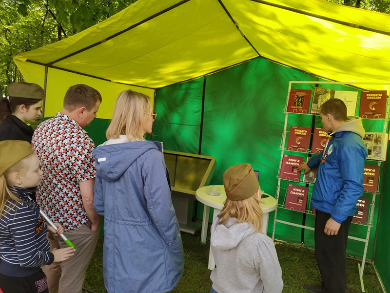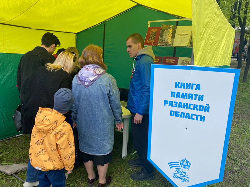 В рамках празднования 78-й годовщины Победы в Великой Отечественной войне в Соборном парке Кремля, который 9 мая стал Парком Победы, сотрудники библиотеки имени Горького организовали площадку "Книга Памяти Рязанской области".