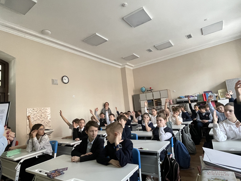 К творчеству писателя сегодня прикоснулись четвероклассники гимназии № 2 имени академика И.П. Павлова. Детей познакомили с биографией Джеймса Хэрриота, с рассказом «Пес или телевизор». Ребята вместе рассуждали о важности профессии ветеринара, выясняли, какие животные входят в список обязательных к изучению сельским доктором. В завершение учащиеся ответили на вопросы небольшой викторины об особенностях поведения домашних питомцев.