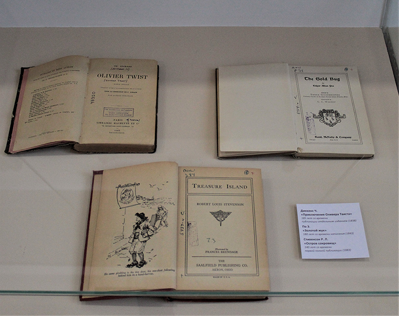 Ряд иностранных произведений представлены на языке оригинала – «Фауст» Иоганна Гёте, «Без семьи» Гектора Мало, «Консуэло» Жорж Санд, «Эдинбургская темница» и «Квентин Дорвард» Вальтера Скотта, «Приключения Оливера Твиста» Чарльза Диккенса, «Золотой жук» Эдгара По, «Остров сокровищ» Роберта Стивенсона.