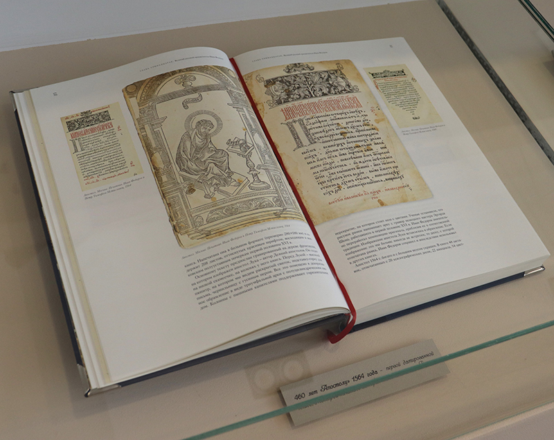 В первый раздел вошли произведения юбилейные по дате создания или первой публикации. Среди них особо выделяется «Апостол» – первая датированная книга, с которой началась история книгопечатания в России. В этом году изданию исполняется 460 лет. Труд над этим шедевром длился почти год – с апреля 1563 года по март 1564-го, а тираж по тем временам был внушительным – около 2000 экземпляров. До наших дней в музеях и библиотеках сохранилось всего около 60 книг. На нашей выставке «Апостол» представлен в издании Е. Л. Немировского «Книги изменившие мир».