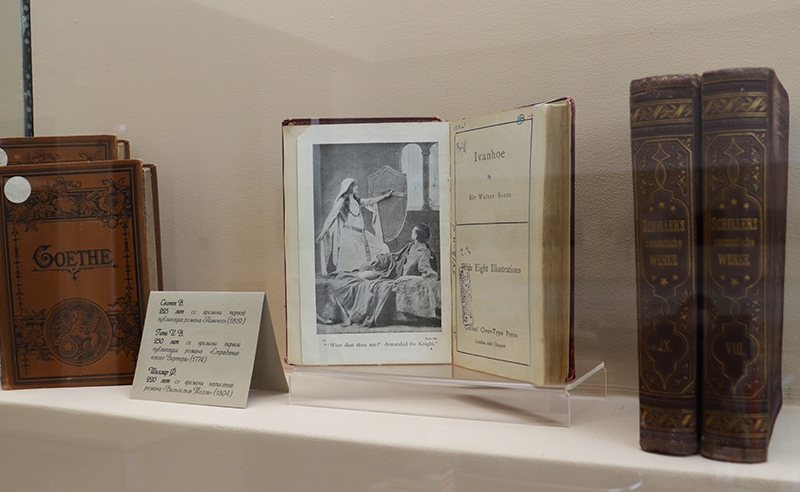 Читатели увидят также произведения-юбиляры на языке оригинала: «Айвенго» В. Скотта на английском, «Страдания юного Вертера» И. Гете и «Вильгельма Телля» Ф. Шиллера на немецком, «Тартюф» Мольера на французском.