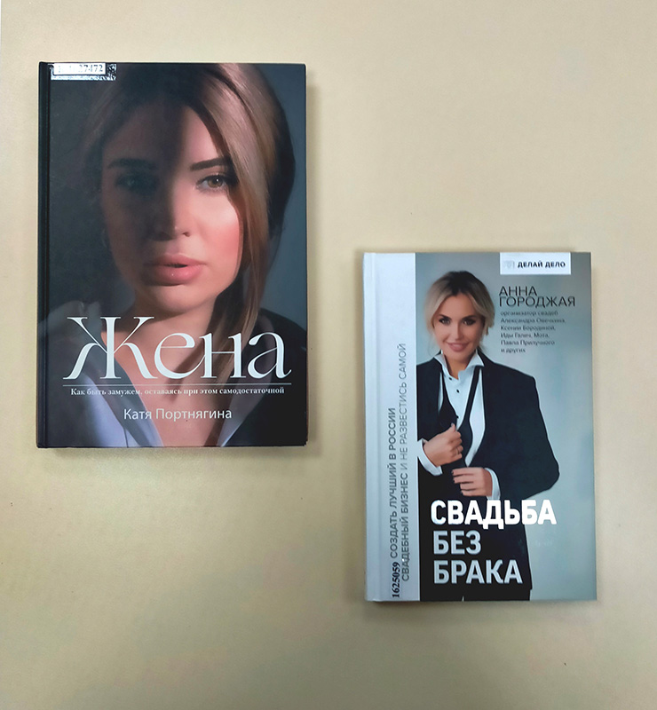 В книге «Свадьба без брака» директор свадебной компании Анна Городжая дает своим читателям откровенный совет, как создать свадебный бизнес и не развестись самой. А Катя Портнягина в книге «Жена» делится откровениями, как, выйдя замуж за неизвестного парня и помогая ему расти и развиваться, поддерживая его в периоды побед и в моменты кризисов, стать для него настоящей музой, другом, соратником и полноправным партнером не только по бизнесу, но и в жизни.
