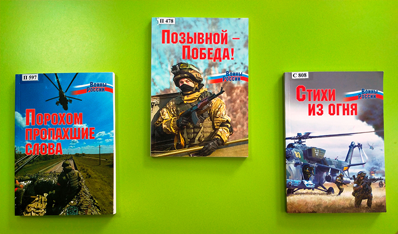 Антологии современной патриотической поэзии «Позывной – Победа!», «Стихи из огня» и «Порохом пропахшие слова». В них поэты из самых разных регионов России, в том числе Донецкой и Луганской Народных республик, откликнулись на драматические события последнего времени и посвятили свое поэтическое слово воинам, выполняющим ратный и патриотический долг в ходе специальной военной операции.