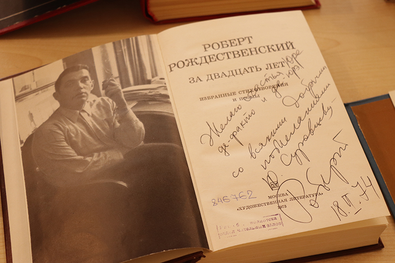 Встреча в библиотеке прошла в теплой и дружеской атмосфере. Гости поделились воспоминаниями о Юрии Ивановиче Суровцеве, а сотрудники центра редких и ценных изданий РОУНБ им. Горького рассказали о большой исследовательской работе, проводимой по созданию иллюстрированного каталога автографов, сделанных на книгах из личной библиотеки Ю. И. Суровцева.