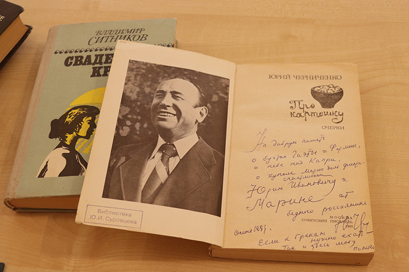 Анна Юрьевна Петанова, дочь Юрия Суровцева, подарила библиотеке более ста книг, которые значительно пополнили тысячную коллекцию изданий с автографами национальных писателей и поэтов, переданную родственниками Юрия Ивановича в фонд «Горьковки» еще в 2002 году.