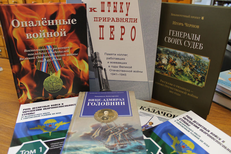 Также на выставке экспонировались книги «Опаленные войной. Воспоминания рязанцев – последних свидетелей Великой Отечественной войны 1941 – 1945 годов», книга Людмилы Анисаровой «Вице-адмирал Головнин» и другие.