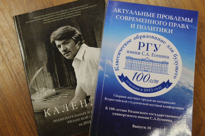 В их числе издание «Святитель Феофан и книги», подготовленное Рязанской областной унивресальной научной библиотекой имени Горького, Рязанской епархиальной библиотекой и Свято-Успенским Вышенским монастырем, последний выпуск «Вестник Геральдического совета при губернаторе Рязанской области», «Календарь знаменательных и памятных дат на 2016 год», сборник научных трудов, изданный к 100-летию Рязанского государственного университета, и двухтомник «Роль десантных войск в укреплении обороноспособности страны».