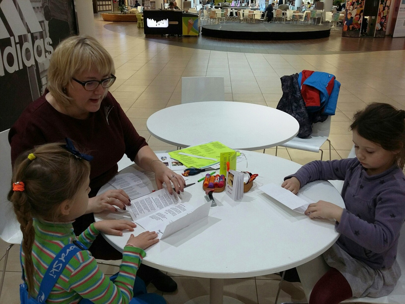 Изготовление книжки из бумаги — простое и увлекательное занятие. Книжка может послужить дневником, блокнотом для рисования или же милым самодельным подарком. Дети с удовольствием мастерили книги из одного листа бумаги, используя в работе основные принципы древнего искусства оригами. Многие участники пообещали каждую субботу приезжать в торговый центр, чтобы поучаствовать в библиотечных мастер-классах.
