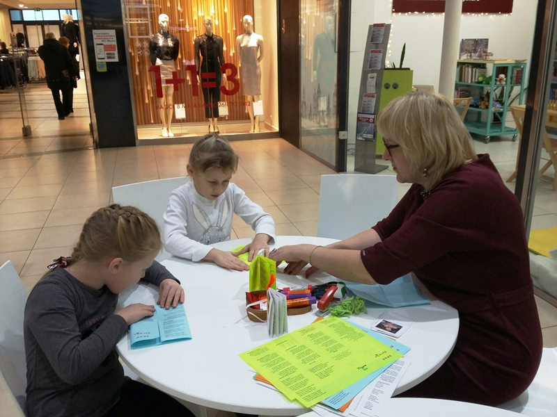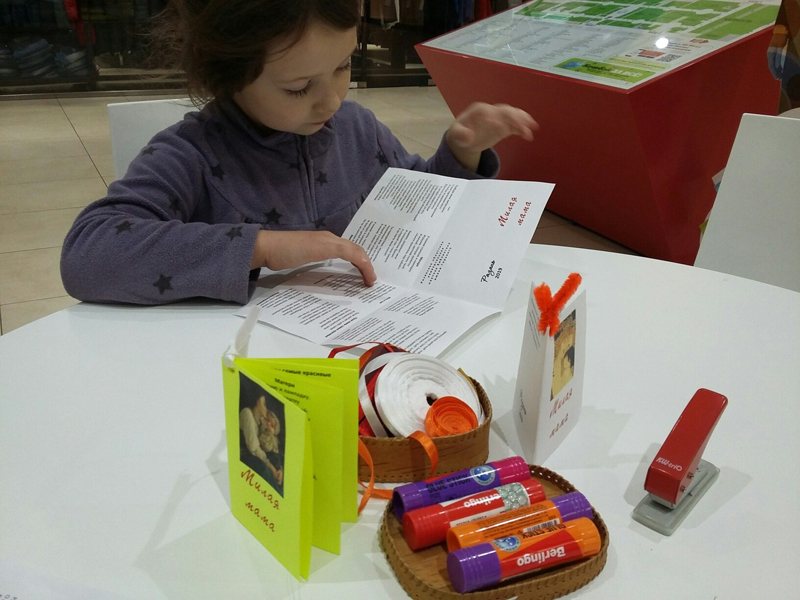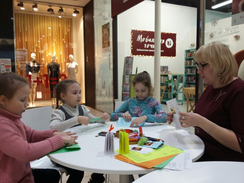 В Мобильной точке областной библиотеки в торговом центре «М5 Молл» сотрудники Центра литературы по искусству провели для юных читателей мастер-класс по изготовлению миниатюрной книжки.
